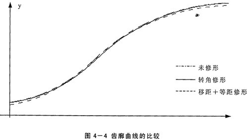 以上三種齒廓修形法中,轉(zhuǎn)角修形法不僅機構(gòu)調(diào)整麻煩,而且不能單獨使用,然而采用適當(dāng)?shù)囊凭嘈扌瘟亢偷染嘈扌瘟肯嘟M合的方法可使磨削出的齒廓與用轉(zhuǎn)角修形法得到的齒廓相接近,因此在傳動中可使多對齒同時嚙合,并且在齒頂和齒根處均有間隙存在,采用這樣的修形方法磨削擺線輪比轉(zhuǎn)角修形法方便得多。