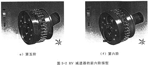 對(duì)上圖有限元模型進(jìn)行模態(tài)計(jì)算時(shí)不必求出全部的固有頻率和振型,越是低價(jià)模態(tài),對(duì)振動(dòng)影響越大,通常取前5~10階模態(tài),精度就已足夠。本課題在分析中求解了前11階模態(tài),這些模態(tài)的固頻率和振型情況見(jiàn)表5-1,圖5-2僅給出減速器的前6階固有振型,通過(guò)振型圖和各階振型的動(dòng)畫顯示,可直觀地分析RV減速器的動(dòng)態(tài)特性。