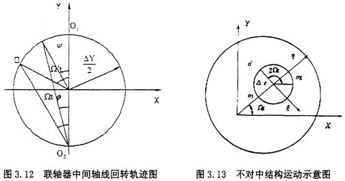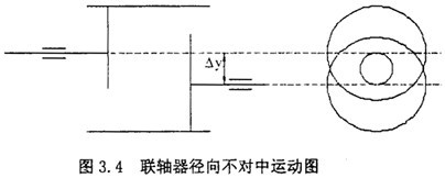 (2)當轉(zhuǎn)子軸線之間存在徑向位移時(如圖3.3所示),聯(lián)軸器的中間套齒與半聯(lián)軸器組成移動副,不能相對轉(zhuǎn)動,但是中間套齒與半聯(lián)軸器產(chǎn)生相對滑動而作平面圓周運動,即中間套齒的中心是沿著以徑向位移△y為直徑作圓周運動,如圖3.4所示。