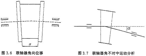 (3)當轉(zhuǎn)子軸線之間存在偏角位移時(如圖3.6),從動轉(zhuǎn)子的角速度與主動轉(zhuǎn)子角速度是不同的,從動轉(zhuǎn)子的角速度為