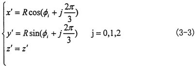 為求出這個參數(shù)方程,我們必須解決動坐標(biāo)系O″X″Y″Z″同定坐標(biāo)系OXYZ之間的坐標(biāo)變換矩陣[Moo″]。