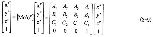 (3-7)式中A1、A2、A3、A4、B1、B2、B3、B4、C1、C2、C3、C4等于其在矩陣[Mo′o″]中對應(yīng)位置的表達(dá)式。