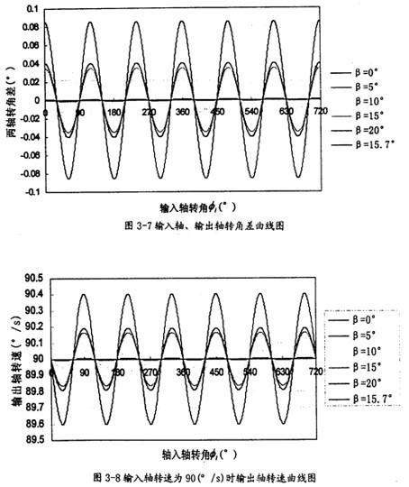 故繪出它們在不同的軸夾角β下隨輸入軸轉(zhuǎn)角 的變化曲線圖,以便進(jìn)行直觀的分析。