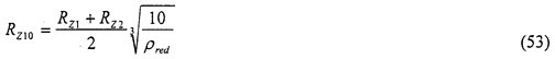 式中:CZR系數(shù)。當(dāng)時(shí)σH1im<850N/mm2時(shí),CZR=0.15;當(dāng)σHlim >1200N/mm2時(shí),CZR=0.08在850N/mm2≤σHlim ≤1200N/mm2范圍內(nèi),CZR可由式(52)算得。