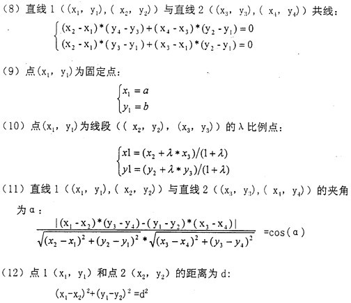 結(jié)構(gòu)約束有水平、鉛垂、共點、相切、平行、垂直、點在直線上,相切、共線、共圓,固定點等。尺寸約束有點到點的距離,夾角,半徑等。對于工程約束,也可以轉(zhuǎn)化成幾何或尺寸約束。