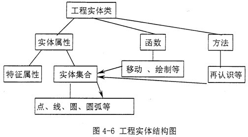 單個實體是通過點、直線、圓、圓弧等信息的集成而體現(xiàn)的,因此,在對實沐類進行定義時,可充分利用AutoCAD中的“實體集合”這個設(shè)計概念,把*.dwg圖形數(shù)據(jù)庫中的若干幾何信息集成起起來,使之成為一個整體,再將此“實體集合”并入實體類的一個屬性(見圖4-6),當(dāng)實體在繪制、移動等操作中被調(diào)用。