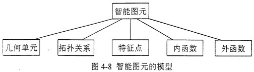 在系統(tǒng)實現(xiàn)中,智能圖元是一個典型的“類”的結(jié)構(gòu),包括幾何單元集合、拓撲關(guān)系描述、特征點集合、內(nèi)函數(shù)和外函數(shù)(見圖4-9),定義如下: