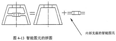對于每一張工程產(chǎn)品圖紙,盡管圖與圖之間是千差萬別的,但是一個產(chǎn)品圖的某個結(jié)構(gòu)總是可以從其他零產(chǎn)品圖中找到相同或相似的。為了有效地利用這些相同或相似的圖形單元,提出拼圖法繪圖:在裝配圖中,一個機器由若干個零件圖組裝而成;而在零件圖中,一個零件可看作是由若干圖形單元組成,如:一個零件外型圖形單元和若干個零件內(nèi)腔圖形單元(包括開孔)組成。歸納來說,無論是裝配圖還是零件圖,都是由若干圖形單元拼成,而且不是簡單的把圖形放到一起,還存在圖形單元的變化。例如:由零件圖拼成裝配圖中,需要有部分零件圖的打斷、消隱等工作;由零件外型圖形單元和內(nèi)腔圖形單元組成零件圖時,更要涉及到圖形圖形之間的打斷、消隱、圓角化等等。這就決定了圖形單元應(yīng)具有部分智能化,命名為智能圖元,它與普通的圖形單元最大的不同在于:智能圖元可以在不同的周圍圖形環(huán)境下自動調(diào)整其表現(xiàn)形式。這種以“智能圖元”為設(shè)計單元的設(shè)計方法稱為智能圖元法。