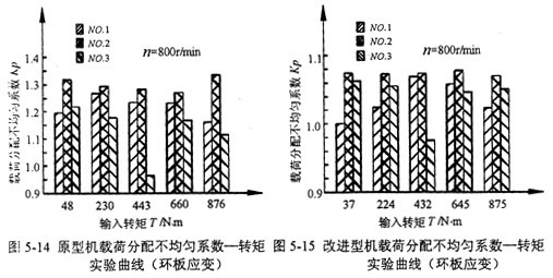 對(duì)三環(huán)減速機(jī)原型機(jī)和改進(jìn)型機(jī)進(jìn)行效率實(shí)驗(yàn),在相同的傳動(dòng)條件下,改進(jìn)型機(jī)的效率略高于原型機(jī),在額定轉(zhuǎn)速和額定轉(zhuǎn)矩下,傳動(dòng)效率可達(dá)92%。對(duì)三環(huán)減速機(jī)原型機(jī)和改進(jìn)型機(jī)的環(huán)板齒根彎曲應(yīng)力和環(huán)板薄弱部位應(yīng)力進(jìn)行測(cè)量,進(jìn)行載荷均衡實(shí)驗(yàn)。結(jié)果表明改進(jìn)型機(jī)具有很好的均載效果,實(shí)驗(yàn)還驗(yàn)證了載荷分配不均勻系數(shù)耳的理論計(jì)算方法的正確性及實(shí)際多少對(duì)齒嚙合問題。