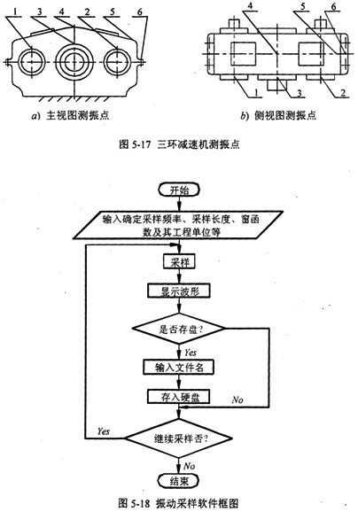 實(shí)驗(yàn)采用壓電式加速度計(jì)測(cè)量三環(huán)減速機(jī)上特征點(diǎn)的振動(dòng)加速度,并且將原型機(jī)與改進(jìn)型機(jī)的情況進(jìn)行比較;同時(shí)對(duì)采集的加速度信號(hào)進(jìn)行積分處理,求得特征點(diǎn)的振動(dòng)速度,計(jì)算振動(dòng)烈度,并且將原型機(jī)與改進(jìn)型機(jī)的情況進(jìn)行比較,從而確定減振效果。