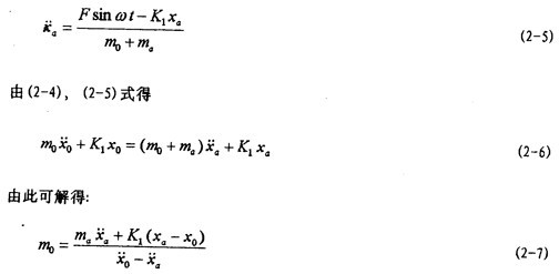 然后取下質(zhì)量ma,維持推力不變,在振動臺上另加一質(zhì)量mb,重復以上試驗,由式(2-7)算得m0,將兩次試驗所得m0取平均值,得到圈質(zhì)量。