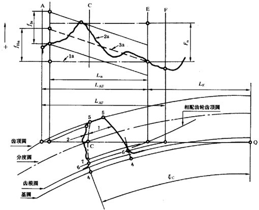 圖29(直齒輪)切向綜合偏差圖上齒間接觸轉(zhuǎn)移對齒廓分量的影響