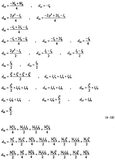 通過(guò)求解以上幾組四元一次線性方程組可求得S2,S4,S6,S8。在此基礎(chǔ)上根據(jù)(4-19)、(4-20)式中ф1與θ1的關(guān)系和(4-53)、(4-54)可得: