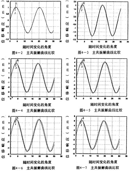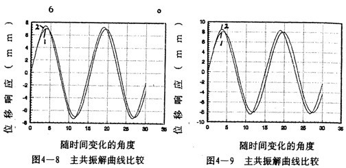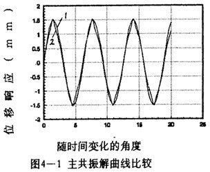 =2時(shí)兩者的重合性很好。(2).隨著振幅的增大,解析解曲線1和仿真解曲線2在相位上產(chǎn)生微小變化,解析解的相位超前仿真一個(gè)小量,原因是隨著振幅的增大,系統(tǒng)呈現(xiàn)更為強(qiáng)烈的非線性,而在推導(dǎo)中略去了高次項(xiàng),但還是可以滿足工程的要求。(3)從(4-78)-(4-85)式中的各δ值可知,在聯(lián)軸器產(chǎn)生主共振的情況下,激振力很小。