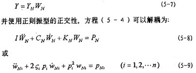 經(jīng)正則坐標(biāo)變換,雖然得到互不耦合的線性微分方程組(5-9),但是(5-9)式仍然不能像單自由度振動系統(tǒng)那樣求解,因為(5-9)式中的激勵力包含未知的振動位移y