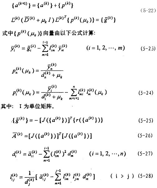 [J3]的計算實際上就是偏導(dǎo)數(shù) {fj({ a(k)})}/ { a(k)}的計算。計算方法與計算 {q({ a(k)})}的方法類似,故不再贅述。對于[J2],[J3]、分別有式(5-34)、(5-35)。