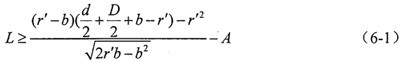由于球狀銑刀的刀刃部分為半球頭形狀,為避免球頭銑刀的刀柄與殼體內(nèi)壁發(fā)生干涉,導(dǎo)致內(nèi)空間正弦滾道被銑削出平面,則空間正弦曲線的平衡位置到殼體端面的距離L應(yīng)滿足一定的條件,由圖6-2中各參數(shù)的關(guān)系,可以得到