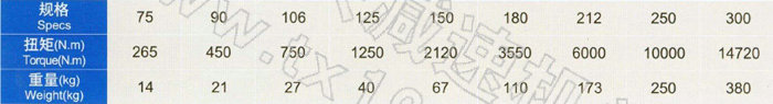 全系列減速器以低速級中心距(mm)為單位,共有75、90、106、125、150,180、