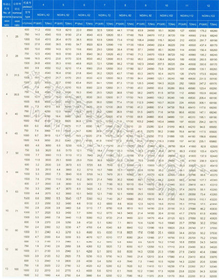 P1—公稱輸入功率,當(dāng)減速器輸入功率不是1500.1000.750r/min時,可按最近表列轉(zhuǎn)速的一檔,折算P2