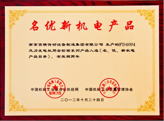 近期,由中國機械工業(yè)質(zhì)量管理協(xié)會和中國機械工業(yè)聯(lián)合會機經(jīng)網(wǎng)共同主辦的“名優(yōu)新機電產(chǎn)品”評選活動中,南京高精傳動設備制造集團有限公司(簡稱:南高齒)子公司南京高速齒輪制造有限公司研制的的FD4094型風電齒輪箱系列產(chǎn)品成功入選《名、優(yōu)、新機電產(chǎn)品目錄》。