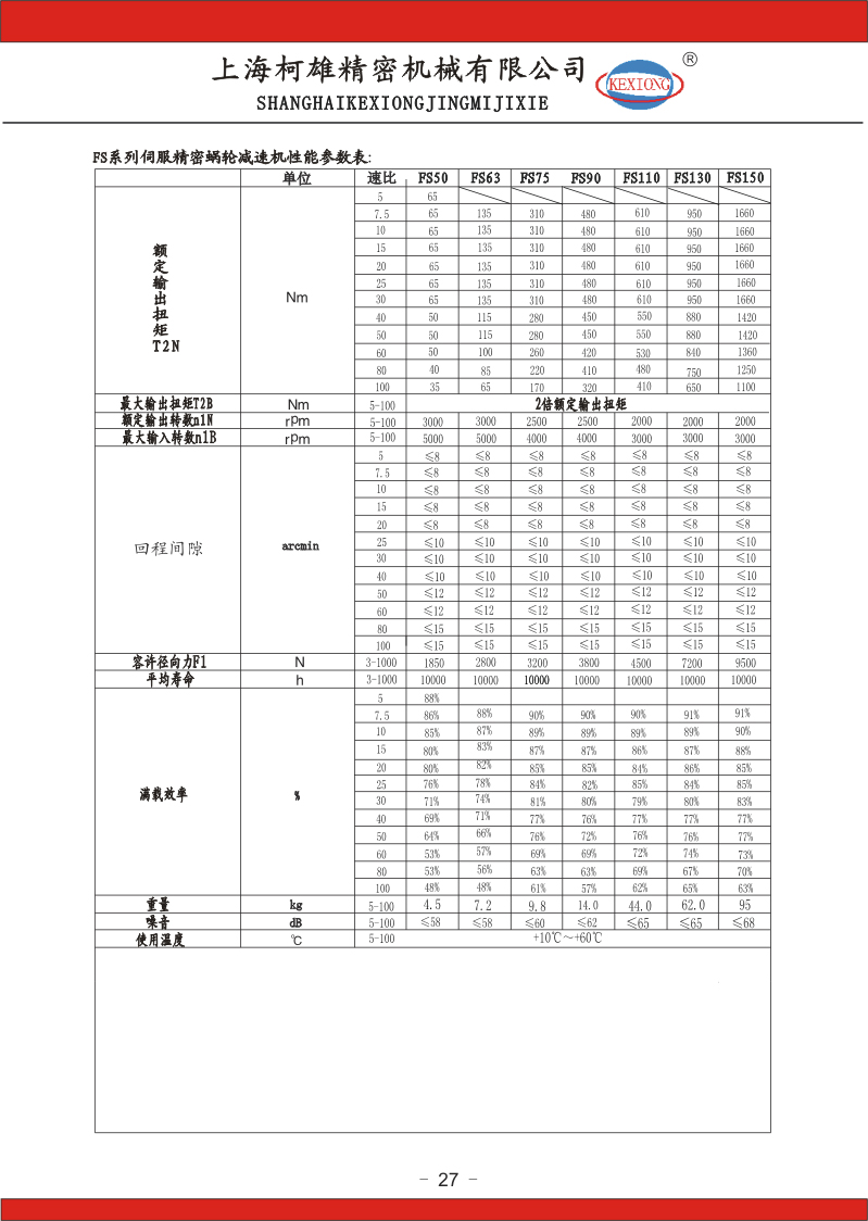 FS系列伺服專用減速機:具有間隙小、效率高、速比大、壽命長、振動低、低噪音、低溫升、外觀美、結構輕小、安裝方便、定位精確等特 點,適用于交流伺服馬達、直流伺服馬達減速傳動。適合于全球任何廠商所制造的驅動產品連接,如:松下、臺達、安川、富士三菱、三洋、西門子、施耐德等等。 FS系列伺服專用減速機特點: FS系列伺服專用減速機應用: