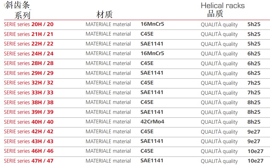 Gambini可使用不同類型的原材料生產(chǎn)高精度的直齒條和斜齒條。我們生產(chǎn)的齒條模數(shù)范圍為0.5到30,品質(zhì)等級范圍為5到10。品質(zhì)等級為5的齒條最大長度為1000mm,如果品質(zhì)等級為6,可生產(chǎn)的單件長度可達2000mm.