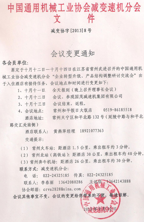 您現(xiàn)在的位置是:減速機(jī)首頁(yè)>>新聞資訊>>行業(yè)資訊>>會(huì)議變更通知