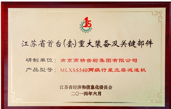 近日,南高齒齒輪集團子公司——南京高精齒輪集團有限公司獲得由江蘇省經(jīng)信委頒發(fā)的認定證書,公司自主研制的“MLXSS540兩級行星立磨減速機”被認定為江蘇省首臺(套)重大裝備。江蘇省首臺(套)重大裝備及關鍵部件的認定和應用示范,旨在鼓勵發(fā)展高端制造領域自主研制的高新技術裝備、大型成套裝備及其關鍵部件。