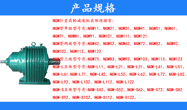 NGW行星齒輪減速機(jī)具體規(guī)格有:NGW型單級型號有:NGW11、NGW21、NGW31、NGW41、NGW51、NGW61、NGW71、NGWB1、NGW91、NGW101、NGW111、NGW121.
