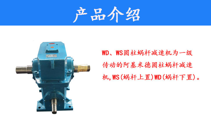 WD、WS圓柱蝸桿減速機為一級傳動的阿基米德圓柱蝸桿減速機,WS(蝸桿上置)WD(蝸桿下置)。