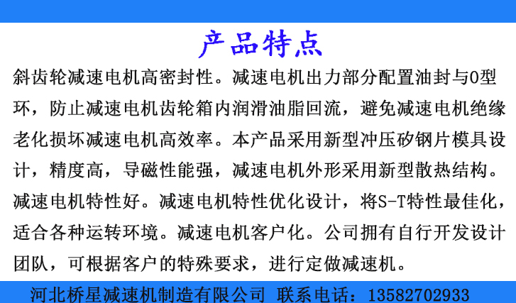 2、減速電機高效率。本產(chǎn)品采用新型沖壓的鋼片模具設計,精度高,導磁性能強,減速電機外形采用新型散熱結(jié)構。
