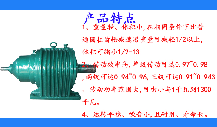 1、重量輕、體積小,在相同條件下比普通圓柱齒輪減速器重量可減輕1/2以上,體積可縮小1/2-132、傳動效率高,單級傳動可達0.97~0.98,兩級可達0.94~0.96,三級可達0.91~0.943、傳動功率范圍大,可由小與1千瓦到1300千瓦。4、運轉(zhuǎn)平穩(wěn)、噪音小,且耐用、壽命長。