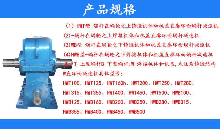 HW直廓環(huán)面減速機具體型號:HWT100、HWT125、HWT160、HWT200、HWT250、HWT280、HWT315、HWT355、HWT400、HWT450、HWT500