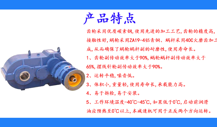 齒輪采用優(yōu)質碳素鋼,使用先進的加工工藝,齒輪的精度高,接觸性好,蝸輪采用ZA19-4鋁青銅、蝸桿采用40C火磨齒加工而成,從而確保了蝸輪蝸桿副的耐磨性,使用壽命長。