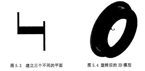 通過(guò)旋轉(zhuǎn)面繞X軸旋轉(zhuǎn)生成3D模型,生成體模型后切換視圖方向,可用從不同的角度觀察圖形,命令為“PlotCtrls>Pan Zoom Rotate”結(jié)果如5.4所示。