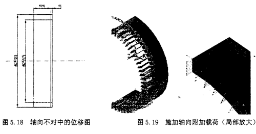 軸向不對中時,根據實際情況取中量為△ax=5mm,則可以認為外端面沿z軸方向的位移為5mm,如圖5.18所示。產生的附加的軸向載荷按照。選擇選擇Main Menu>>Solution>Define