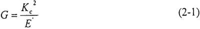 在斷裂力學(xué)中,定義引起裂紋產(chǎn)生單位長(zhǎng)度的擴(kuò)展所需要的能量為裂紋驅(qū)動(dòng)力G。在平面問(wèn)題中,G與應(yīng)力強(qiáng)度因子Kc的關(guān)系可以表達(dá)為: