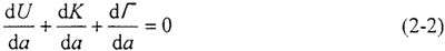 對(duì)于無(wú)限大板中的裂紋而言,應(yīng)變能U和表面能Γ的表達(dá)式同靜態(tài)情況相比沒(méi)有形式上的改變。將三種能量的表達(dá)式代入能量平衡方程(2-2),可得: