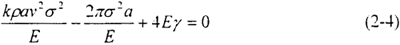 將單位面積的表面能γ用表示為臨界裂紋長(zhǎng)度ac的形式,經(jīng)過(guò)Berry等人的修正,得到裂紋速度的表達(dá)式: