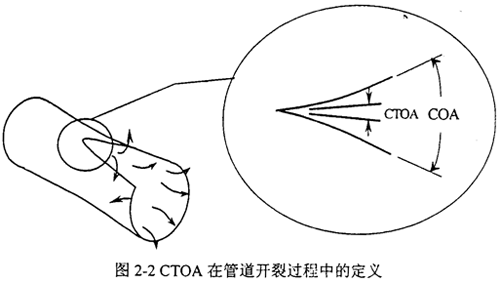 裂紋尖端張開角CTOA(Crack Tip Opening Angle)最早被用來分析核電站管路的穩(wěn)態(tài)裂紋擴展,后來用于輸氣管線和航空工業(yè)。如圖2-2,與裂紋張開角COA不同,CTOA對應于一定的斷裂擴展狀態(tài),不隨測量點的位置而改變。CTOA在數(shù)學上可以按下式定義: