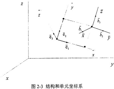 ●節(jié)點坐標系行(,,),反映節(jié)點的平動與轉動;正交基矢量為bi。