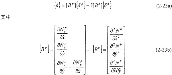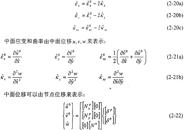 基于Kirchhoff假設的板殼單元,殼體中某一點的應變,可以由中面應變,,和曲率,,來表示: