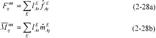 利用疊加原理,將每一個單元內(nèi)的節(jié)點上的內(nèi)力和內(nèi)彎矩分別求和,可得到節(jié)點上的相應分量: