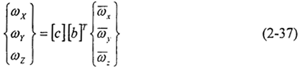 將上面的轉換矩陣定義為[c],則邊界條件中的平動速度可按(2-36)式轉化為局部坐標中的分量,轉動角速度按下式定義: