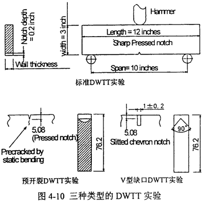 圖4-8和圖4-9分別表示DWTT的試樣標(biāo)準(zhǔn)和斷口形貌。