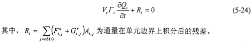 在計算出無粘通量和粘性通量后,代入(5-14)式可得到半離散的差分方程:
