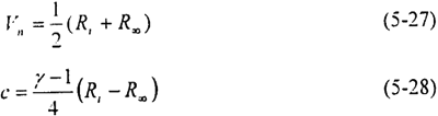 其中無反射邊界條件是根據(jù)特征線的方法來求出邊界上的參數(shù)值。根據(jù)一維完全氣體無粘非定常運動的方程組,在亞聲速的條件下由邊界上的入射波和出射波關系可以得到兩個Riemann不變量: