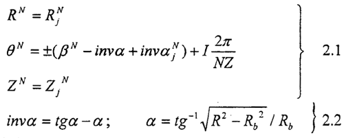 Rb:基圓半徑;I=1,2,3……Nz,Nz:齒個(gè)數(shù);