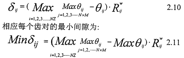 所對(duì)應(yīng)齒對(duì)上的點(diǎn)則為內(nèi)齒輪轉(zhuǎn)過(guò)θ后,NZ個(gè)齒中最先嚙合的齒對(duì)上的嚙合點(diǎn),則在內(nèi)齒輪轉(zhuǎn)過(guò)θ時(shí),對(duì)應(yīng)齒對(duì)圓周方向間隙為: