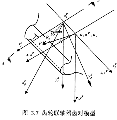 如圖3.7所示,O-XYZ;是固定坐標系,O是內(nèi)外齒輪對中時內(nèi)外齒輪中心Z是齒傳輸線聯(lián)軸器的軸向,OK-XKYKZK:分別代表固定在內(nèi)外齒輪上的坐標,OK是內(nèi)外齒輪中心(k=N,w)表示內(nèi)處齒輪),